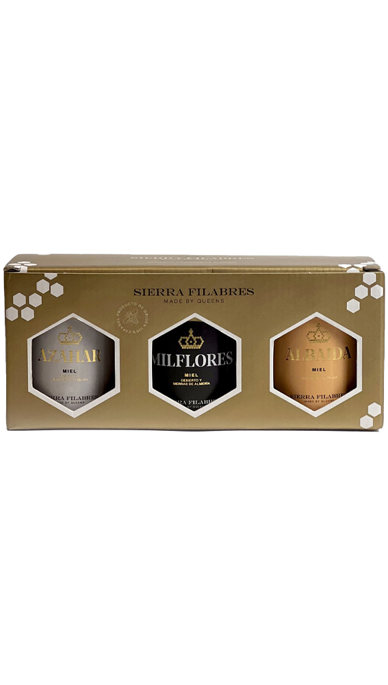 El pack del desierto contiene 3 envases de 300gr. cada uno de una cuidada selección de miel obtenida de flores del desierto de Almería: